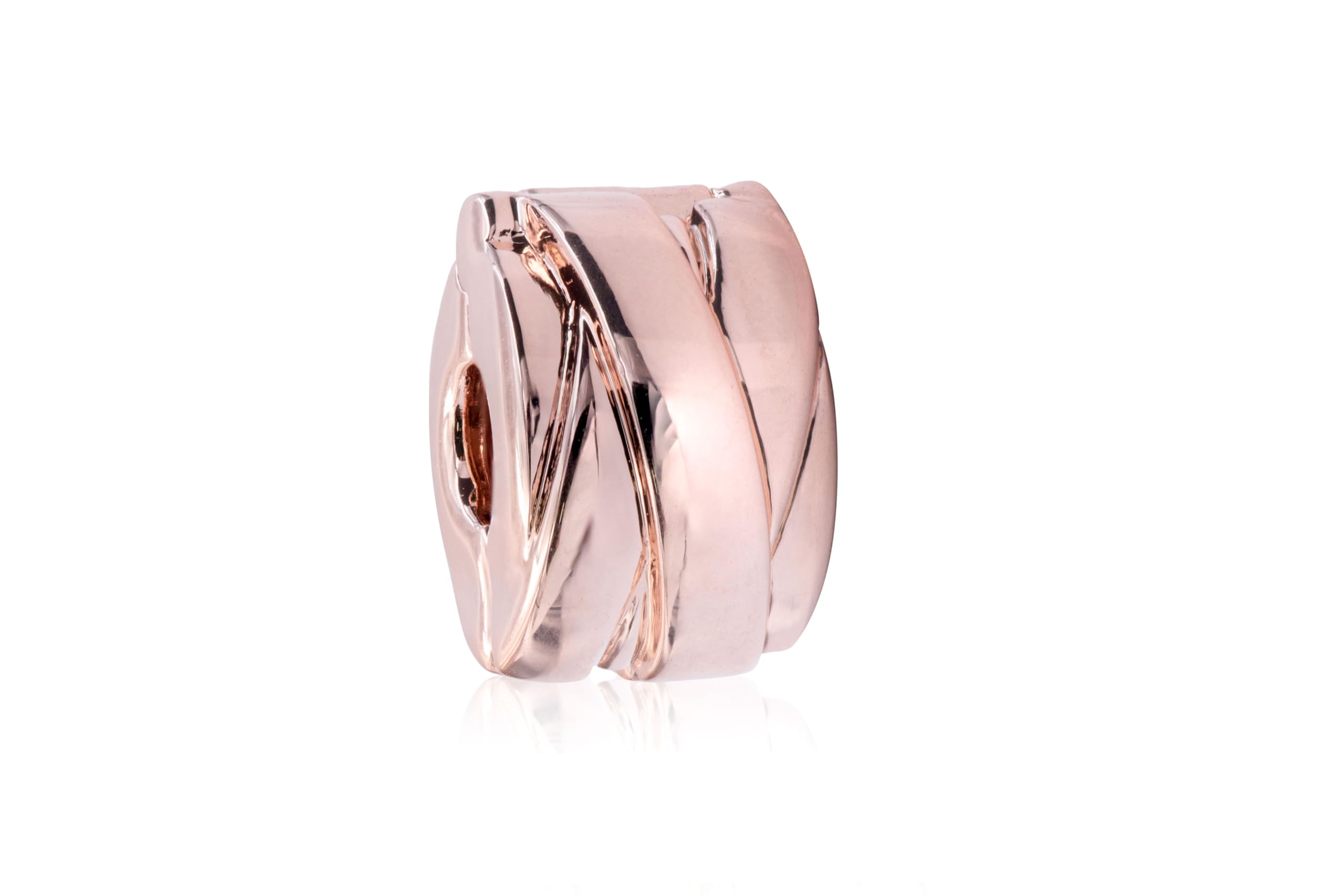 - Hand-finished in 14k rose gold-plated metal this clip charm has no silicone grip so it will slide if not styled onto threads.