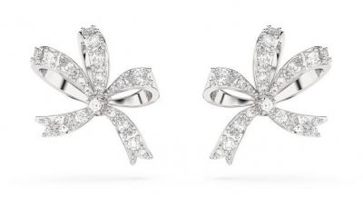 Swarovski Hyperbola stud Earrings Bow - Small - White - Rhodium Plated