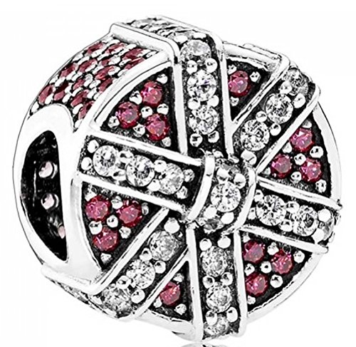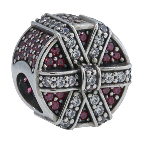 Featuring sparkling red accents and an ornate bow this glittering round gift box charm in sterling silver captures the excitement of the festive season.