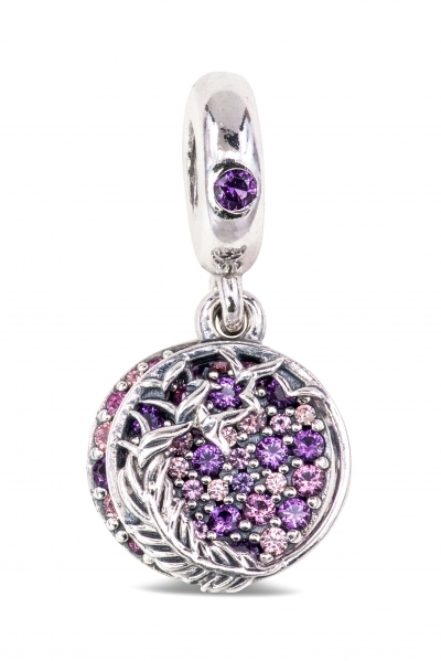 - This sterling silver charm has a back dangle with pave made of pink cubic zirconia and pink and purple crystals along with an engraved message on the reverse that reads Spread love everywhere you go.