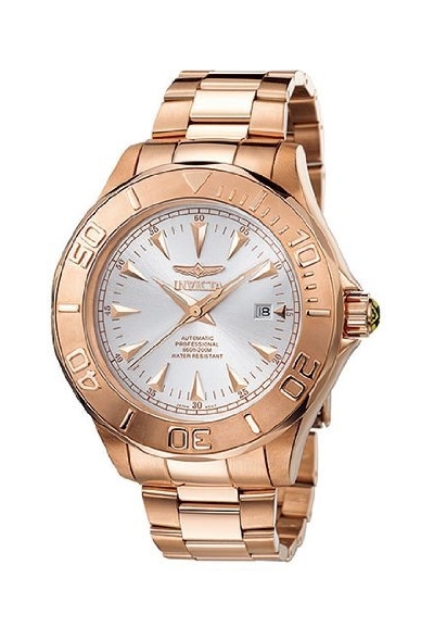 Unidirectional stainless steel bezel in 23Kt rose gold tone.