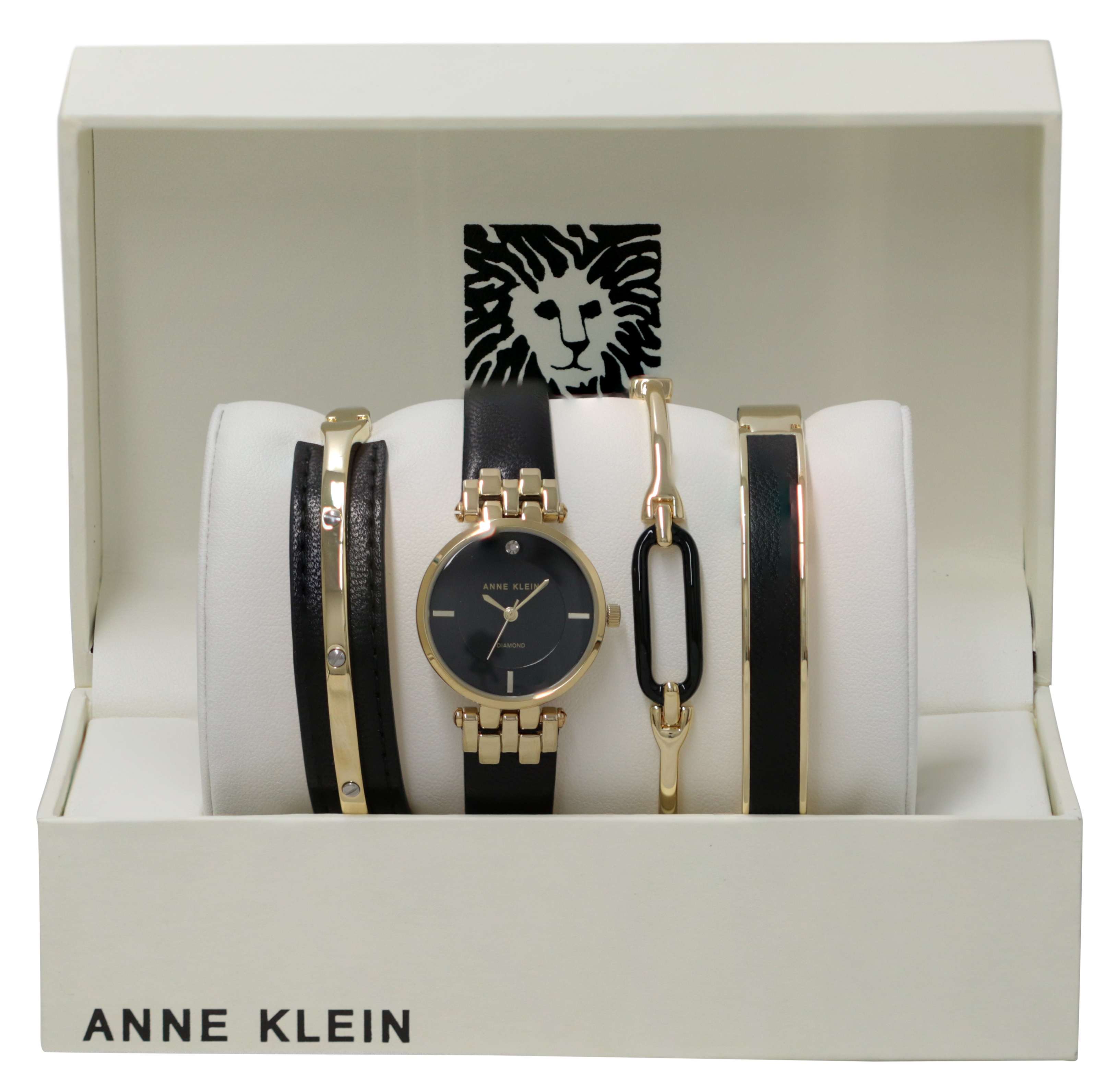 Anne Klein Leather Bangle Set And Ladies Watch AK-2684BKST