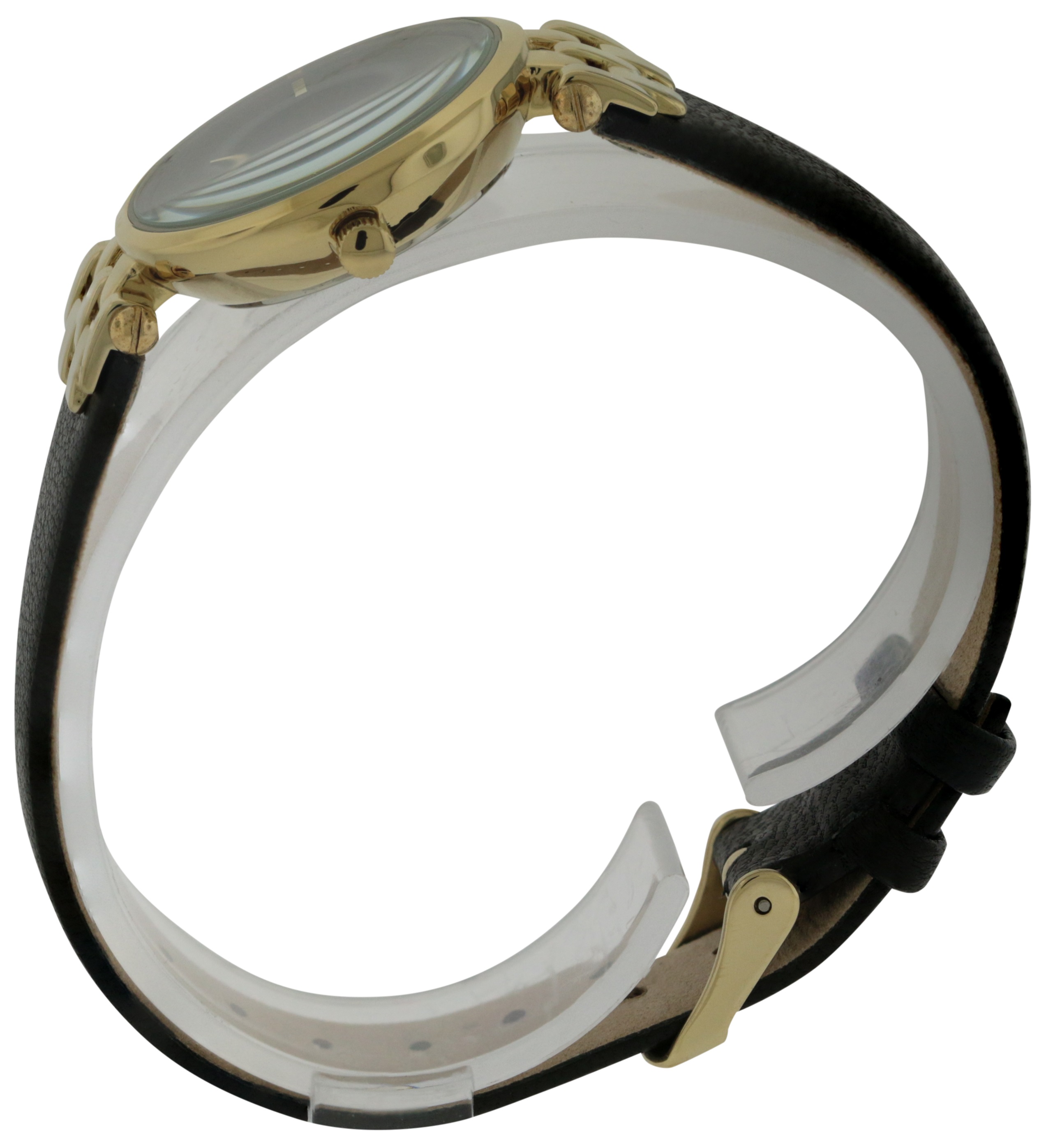 Gold-tone metal case.