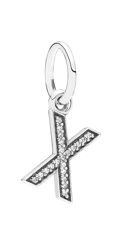 - The clean and graphic design of this letter X pendant charm is embellished with tiny shimmering cubic zirconia.