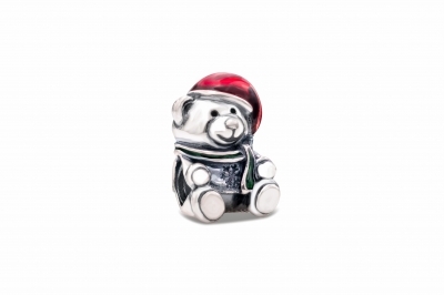 - Our popular sterling silver teddy bear charm is ready for the holidays with a rich red enameled Santa hat.