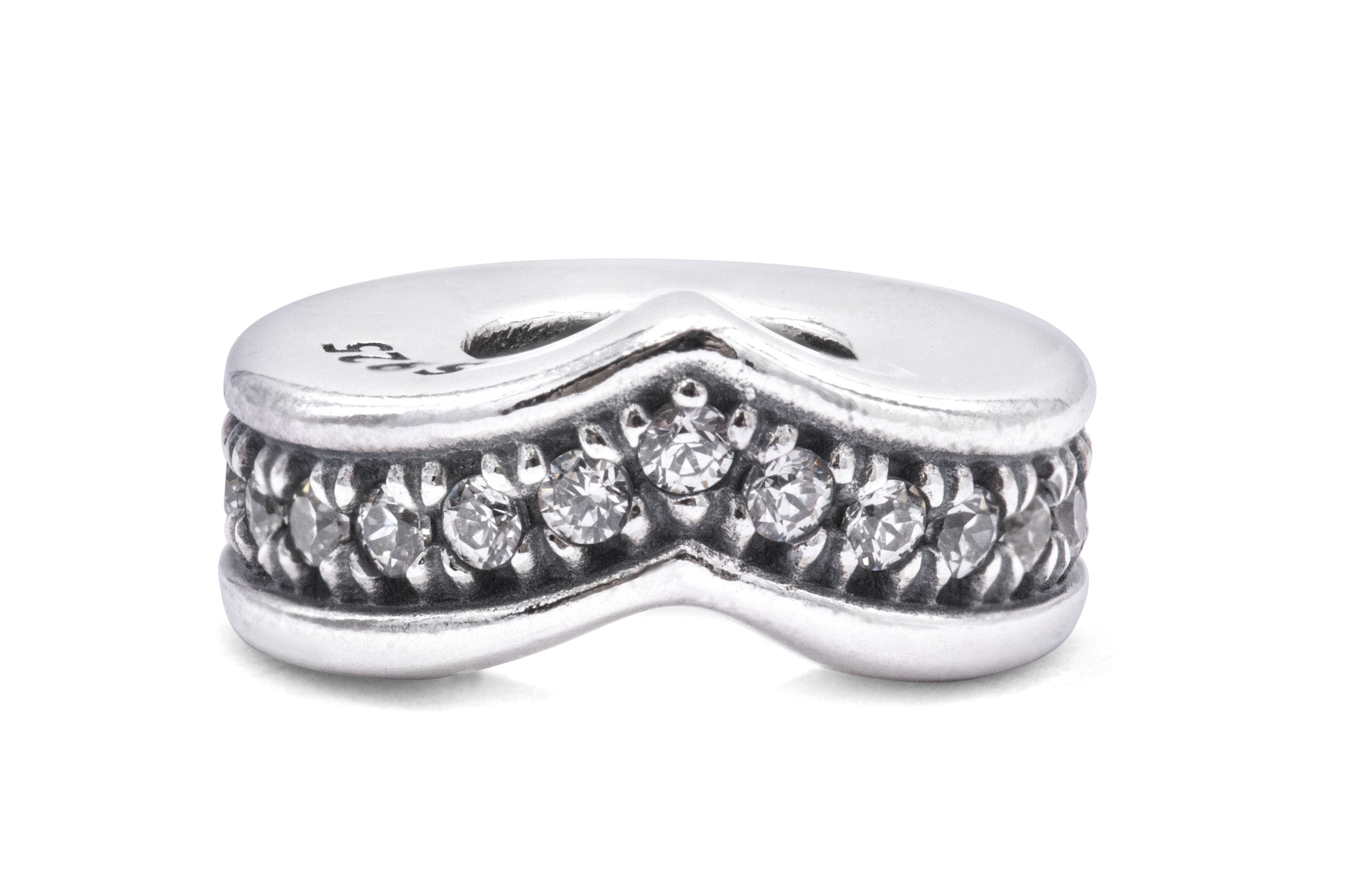 - Clean lines curve into a wishbone shape on this sterling silver spacer lit up with dazzling clear stones.