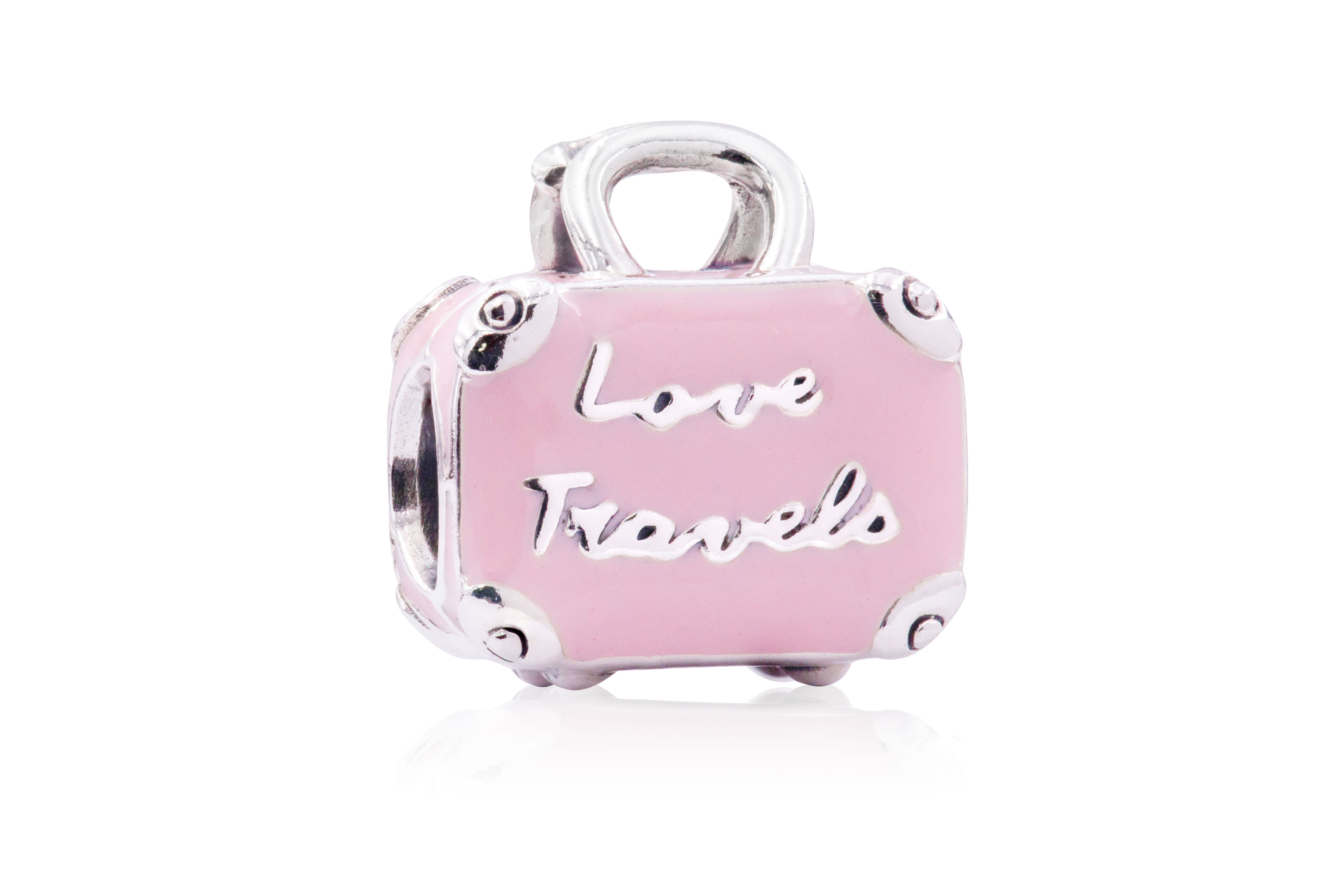 - This pretty pink enamel and sterling silver suitcase charm is part of our series of travel charms.