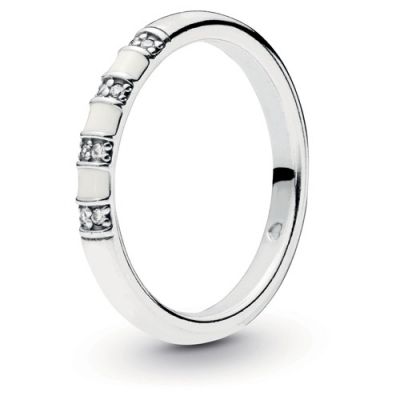 • From PANDORA the vibrant striped pattern on this sterling silver ring is created with alternating lines of clear cubic zirconia and hand-painted white enamel.