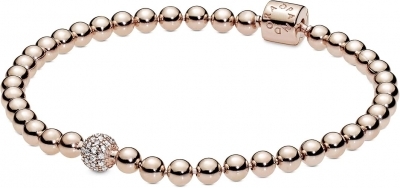 - When you want to wear chunky and edgy beads with an elegant twist this Pandora Rose (14ct rose gold-plated unique metal blend) Beads & Pave bracelet is a perfect choice]The bracelet takes its inspiration from the alternative looks of body piercings and punk-inspired styles and adds a polished refined twist.