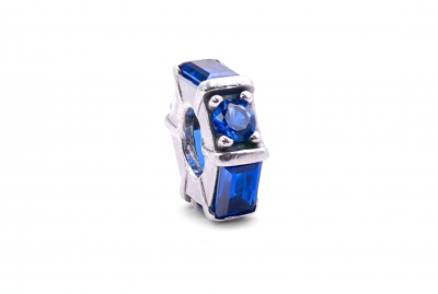 Intriguing sea blue crystals in alternating shapes - faceted baguette-cut and round brilliant-cut - are set in sterling silver on this geometric-inspired spacer.
