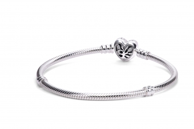 Pandora Moments Family Tree Heart Clasp Snake Chain Bracelet - 18