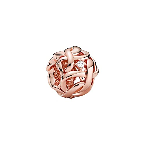 • Representing the continuity found in the infinite and crafted in Pandora Rose (14k rose gold-plated unique metal blend) this openwork charms design is punctuated by three bead-set round brilliant-cut clear cubic zirconia floating within the abstract pattern.