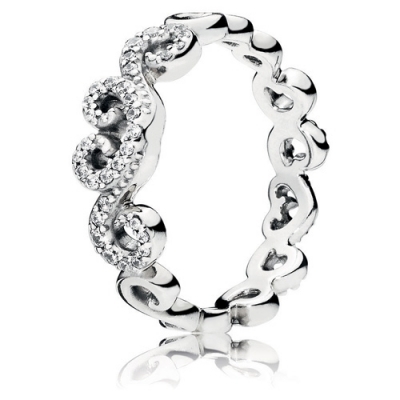 - A sophisticated and feminine rendering of a heart design this sterling silver ring features an elegant swirling pattern accentuated by shimmering cubic zirconia.Wear as part of a silver stack.