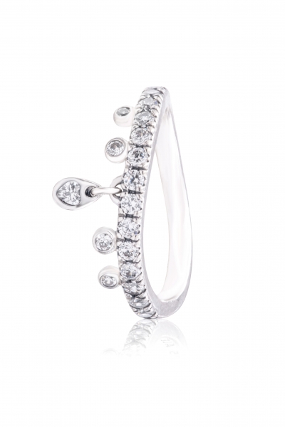 - Curved to follow the shape of your finger this sterling silver ring is detailed with chandelier accents in cubic zirconia.