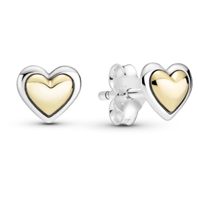 - Hand-finished in sterling silver with slightly domed 14k gold heart centres these two-tone earrings feature a plain polished look for a subtle finish.