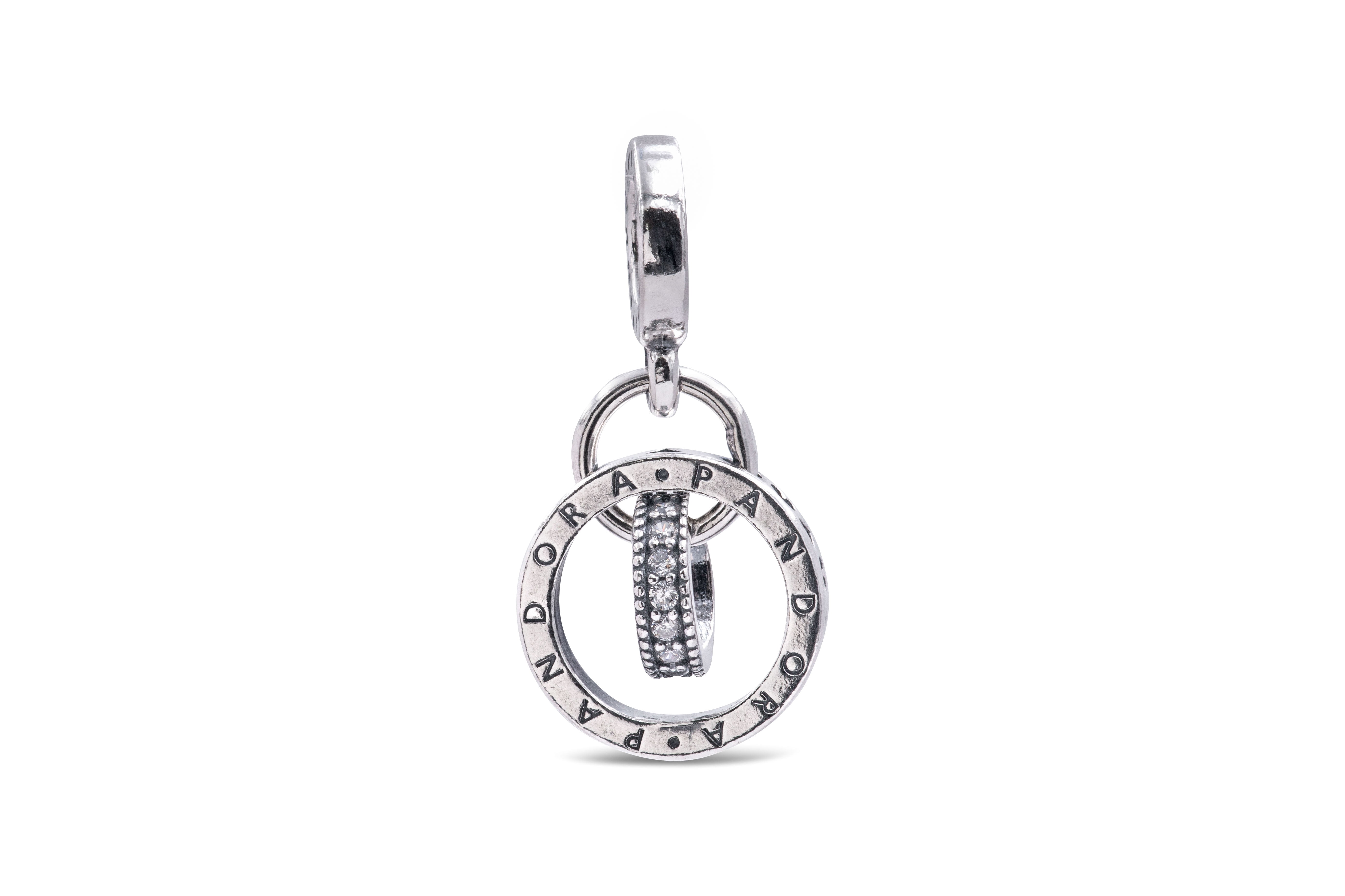 • Go bold with the Pandora Logo Circles Dangle Charm.
