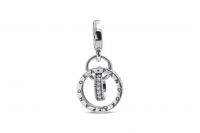 - This Pandora logo charm is hand-finished in Sterling Silver and features three intertwined circles.
