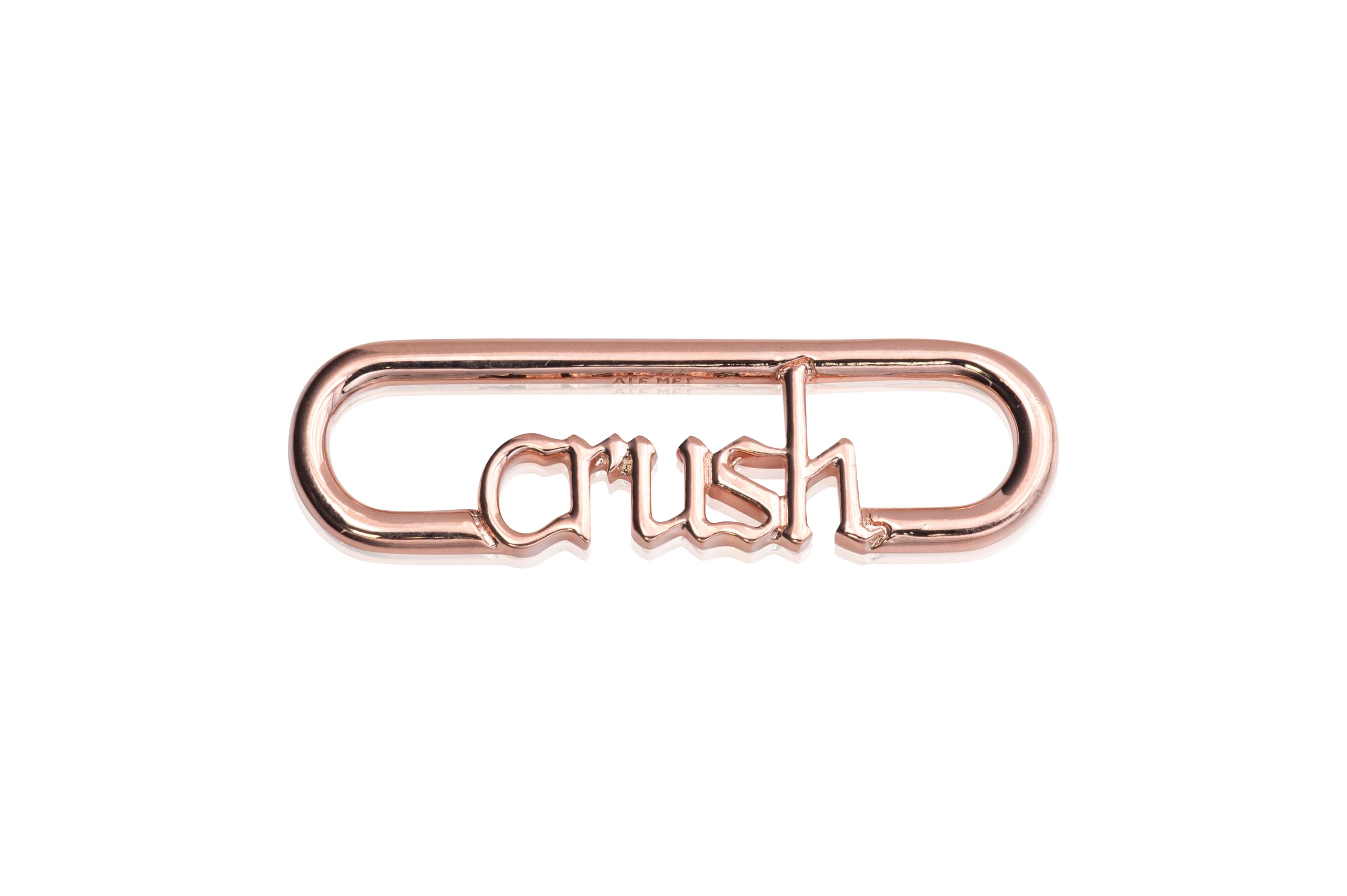 - Hand-finished this 14k rose gold-plated link is emblazoned with the word crush in a handwritten font and can be worn between styling connectors.