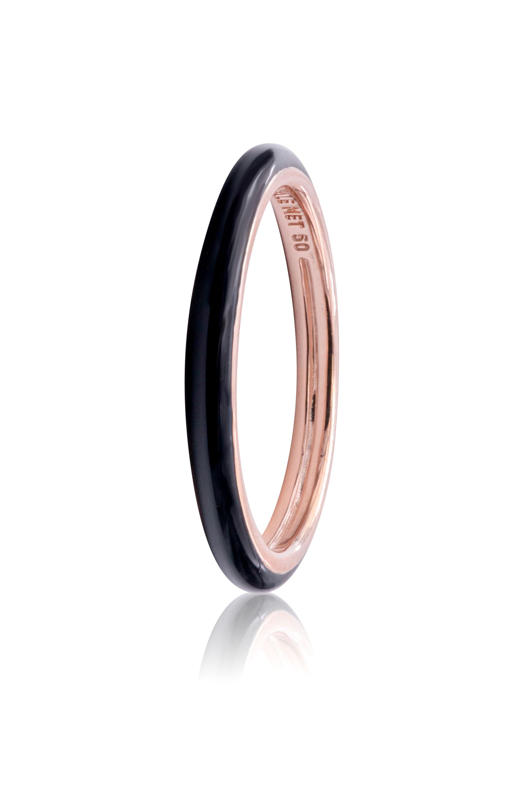 • This 14k rose-plated ring has been decorated with hand-applied black enamel for a cool contrasting finish.