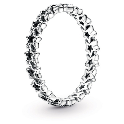 • Inspired by celestial beauty the sterling silver ring features a band of asymmetric openwork stars with delicate milgrain details.