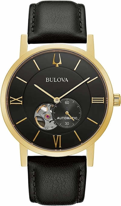 Bulova American Clipper Automatic Leather Mens Watch 97A154