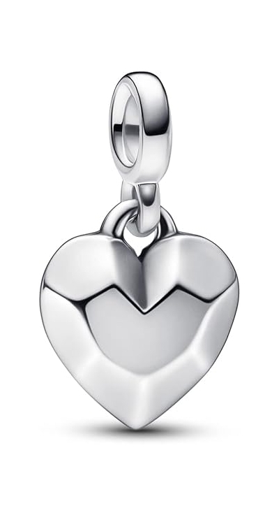 - Crafted from sterling silver this unique mini dangle features a faceted heart on one side and a flat surface on the other - a design that brings 2D motifs to life through 3D elements.