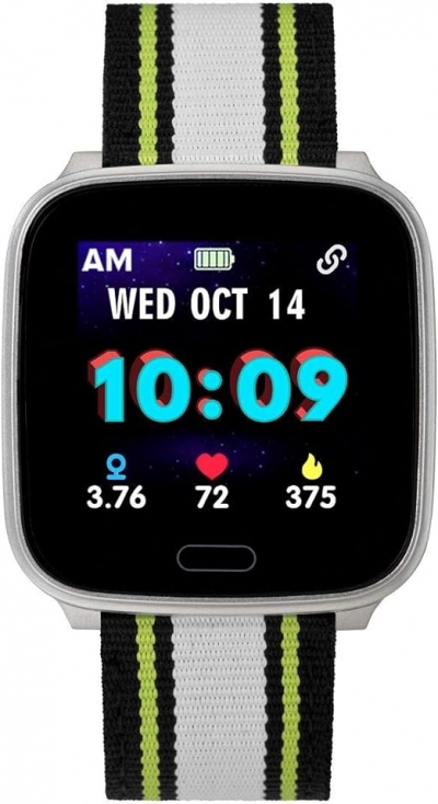 iConnect by Timex Kids Active Smartwatch with Heart Rate Notifications & Activity Tracking 37mm - Silver-Tone with Black Stripe Strap.