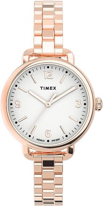 • Timex Womens Standard Demi 30mm Watch - White Dial Rose Gold-Tone Case with Rose Gold-Tone Stainless Steel Bracelet.