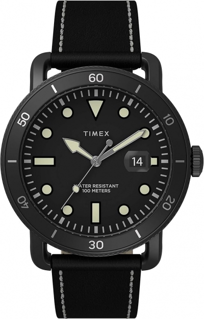 - Timex Mens Port 42mm Stainless Steel Analog Quartz Leather Strap Black 20 Casual Watch (Model: TW2U01800VQ).