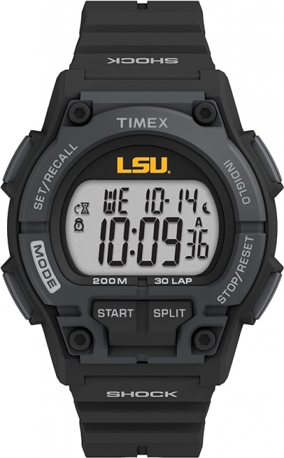 - Timex Tribute Mens Collegiate Takeover 42mm Watch - LSU Tigers with Black Resin Strap.