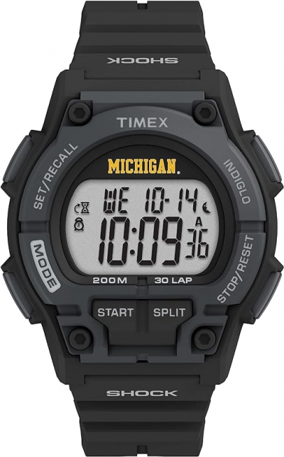 - Timex Tribute Mens Collegiate Takeover 42mm Watch - Michigan Wolverines with Black Resin Strap.