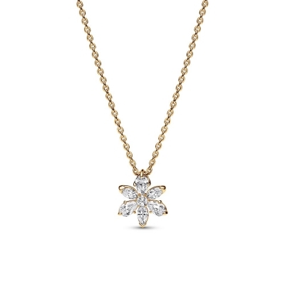 - Featuring sparkling stones in the shape of a flower this 14k gold-plated necklace is inspired by collections of pressed flowers.