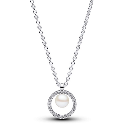 - Crafted in sterling silver it features an adjustable 45 cm chain adorned with a lustrous treated freshwater cultured pearl and sparkling cubic zirconia.