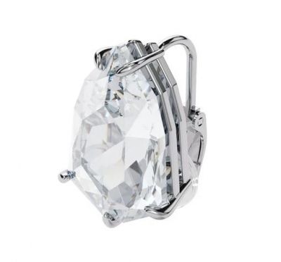 - Dramatic yet refined this single clip earring spotlights a large trilliant cut crystal set on a rhodium plated frame.