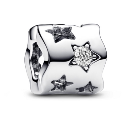 - This sterling silver charm combines star-shaped cut-outs with cubic zirconia stones set in matching star shapes.
