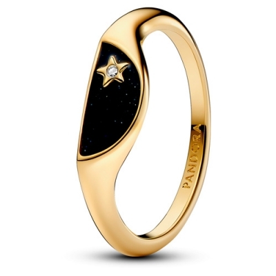 - Wear this black-and-gold ring alone or with the Pandora ME Halved Enamel Signet Ring in sterling silver which is designed to fit together with this ring and place the stars opposite one another.