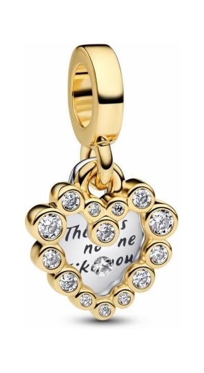 Pandora Sparkling Heart Double Dangle Charm Sterling silver 14k gold plating