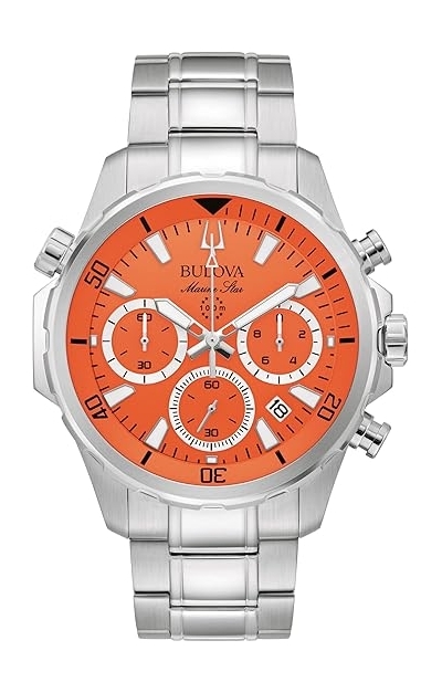 - This Bulova chronograph watch from the Marine Star Collection delivers the vibrancy of the sea with the ruggedness required by those who wish to explore it.