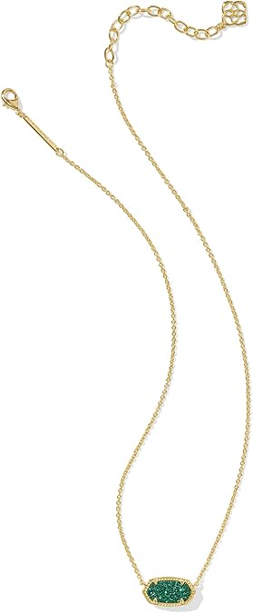 Kendra Scott Elisa Gold Short Pendant Necklace in Emerald Drusy
