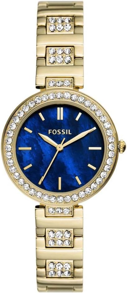 - Embrace timeless elegance with the KARLI watch featuring a 32 mm gold-tone stainless steel case and a striking blue Mother-Of-Pearl dial.