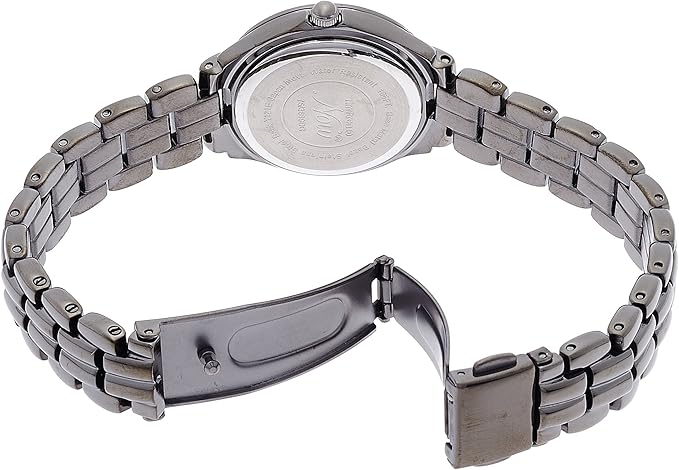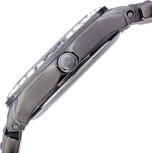 - Gunmetal-tone bracelet watch with genuine crystals at the band and bezel.