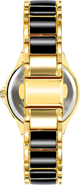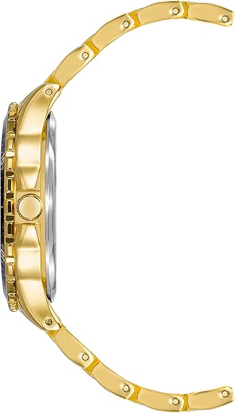 • Dial: Black glossy with white filled gold-tone hands and glitter markers.