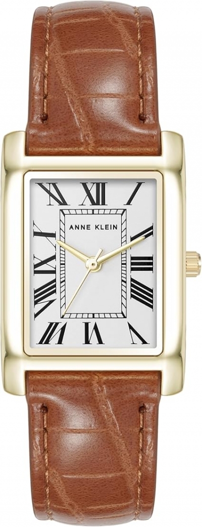- Dial: Silver-tone textured with gold-tone hands and black Roman numerals.