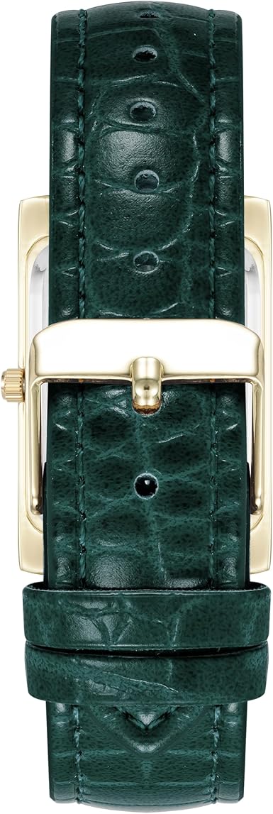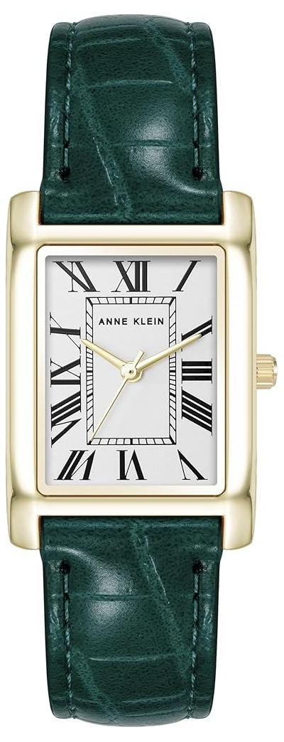 - Dial: Silver-tone textured with gold-tone hands and black Roman numerals.