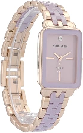 - Dial: Lavender mother-of-pearl with genuine diamond at 12 and rose gold-tone hands and markers.