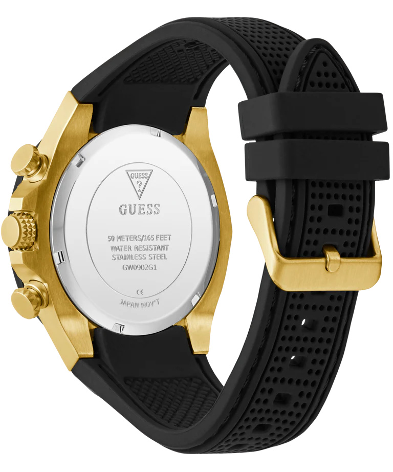 Guess Multi-function Black Silicone Gold-Tone Mens Watch GW0902G1