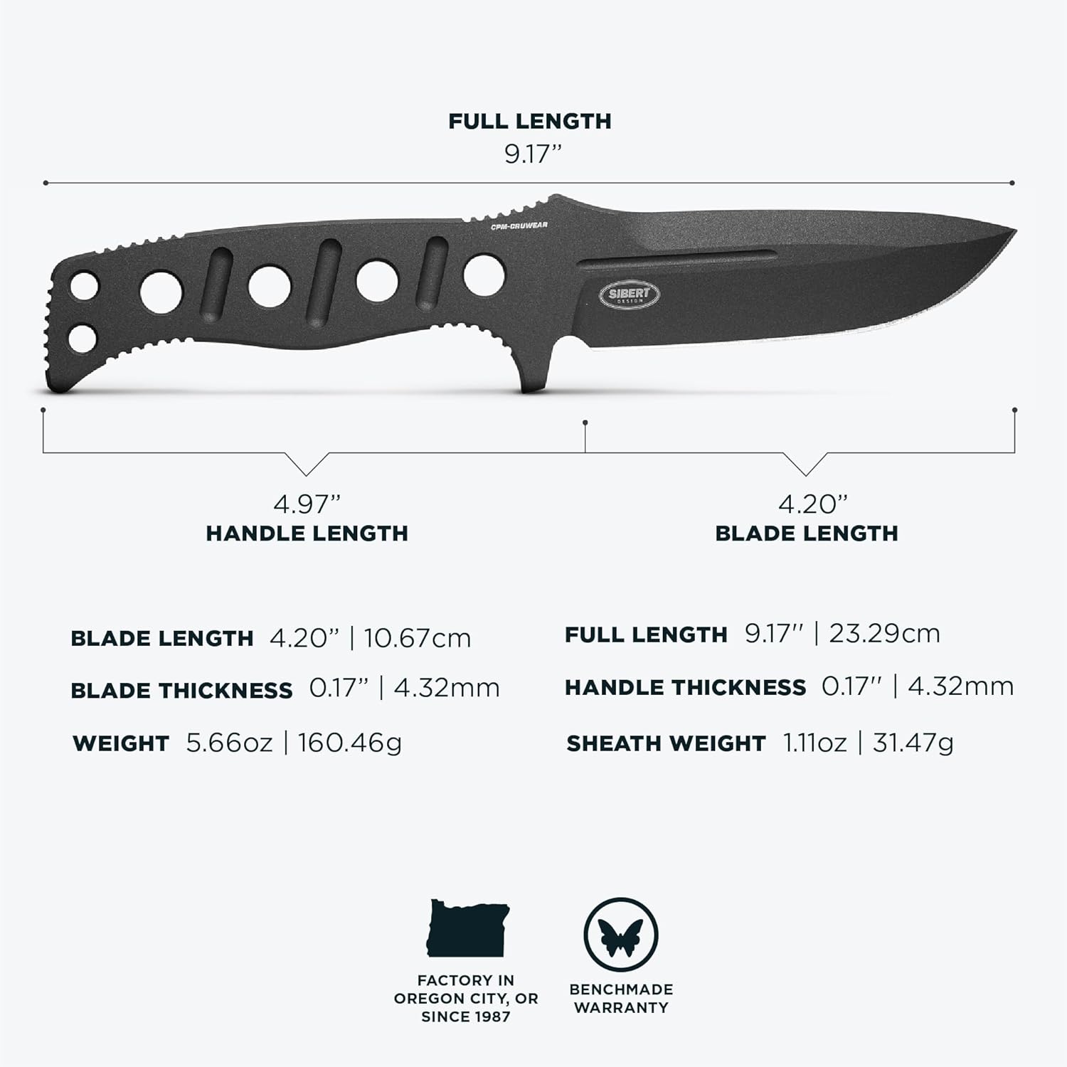 - This 9.17-inch fixed blade is machined from premium CPM-CruWear tool steel (63-65HRC) offering superior toughness and upgraded corrosion resistance under a durable Cobalt Black Cerakote finish.