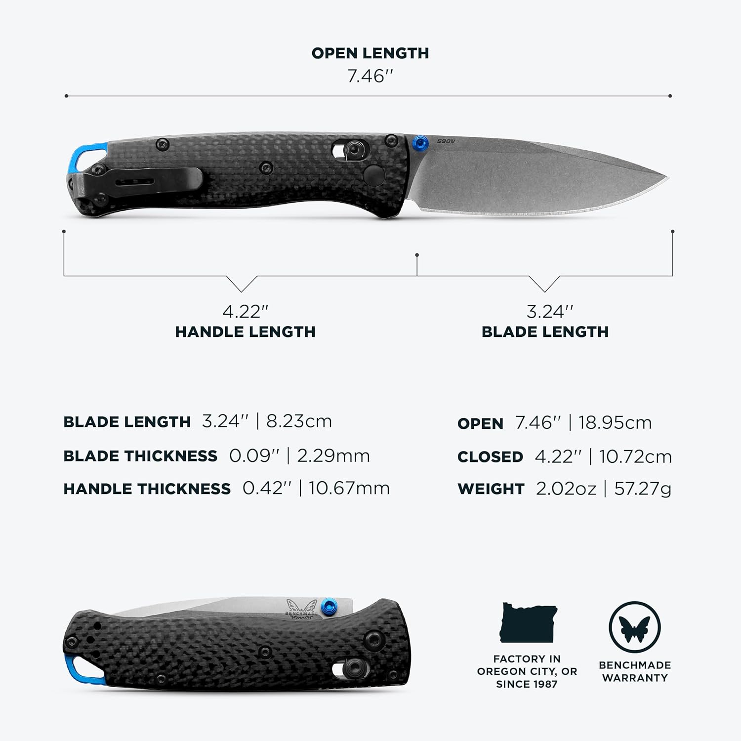 Benchmade Bugout - Carbon Fiber Ultralight Folding Knife - Satin CPM-S90V Super Steel