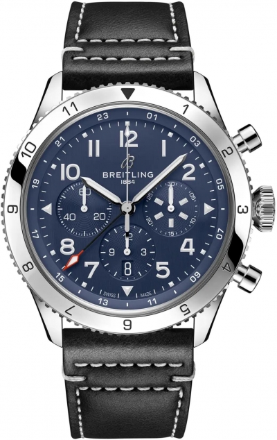 • This robust pilots watch is powered by the COSC-certified Breitling B04 in-house automatic movement offering highly precise chronograph functionality coupled with an indispensable 24-hour GMT complication.
