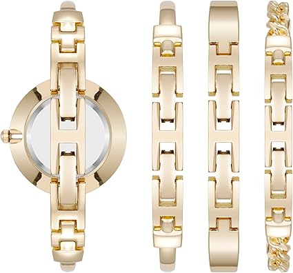 - The delicate 4mm gold-tone bangle is designed with adjustable end links and a jewelry clasp with an extender for a custom fit and the set includes matching bracelets to complete the accessorized look.